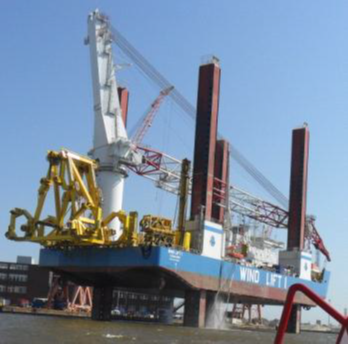 Die Windlift I errichtet Windkraftanlagen positionsgenau. Am Standort hebt es sich hydraulisch mit den vier 71 m hohen Beinen aus dem etwa 40 m tiefen Wasser. Es befindet sich dann bis zu 10 m über dem Wasser, diese Höhe ist notwendig um die Plattform vor Wellenschlag zu schützen.